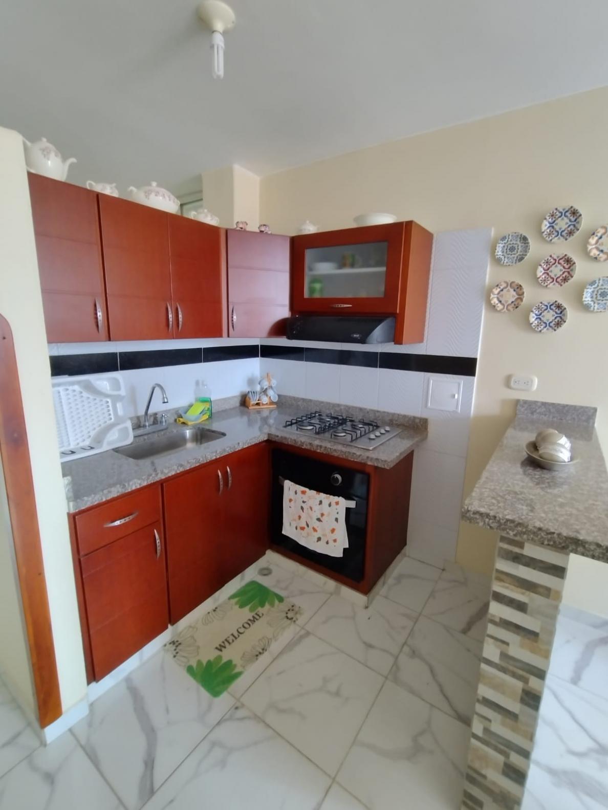 Lindo Apartamento. Cuenta con: 2 alcobas, 2 baños, sala comedor, cocina integral, y zona de lavado. Con un área de 54.57 Mt 2. Sector tranquilo